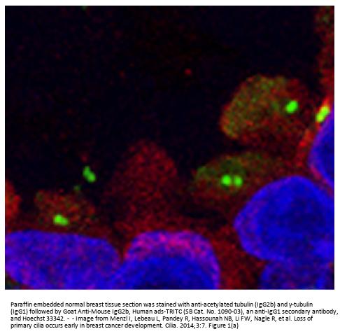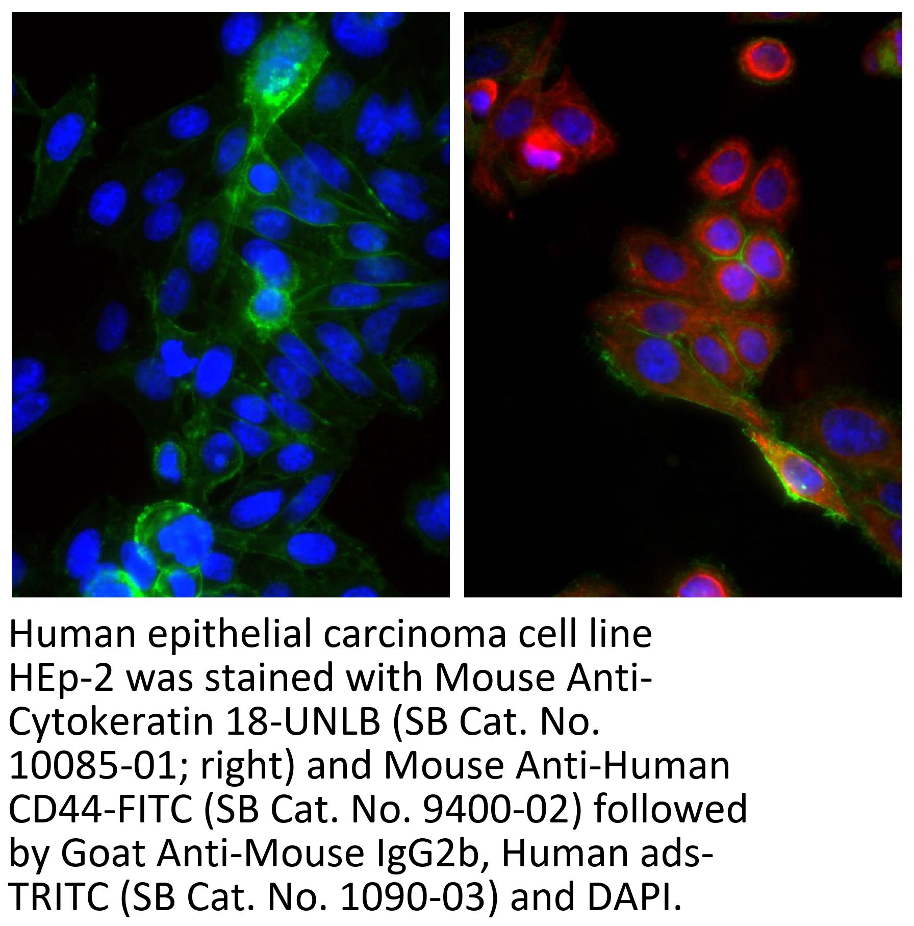 Goat Anti-Mouse IgG2b-TRITC antibody with minimal reactivity to human proteins for use in immunohistochemistry / immunocytochemistry assays.