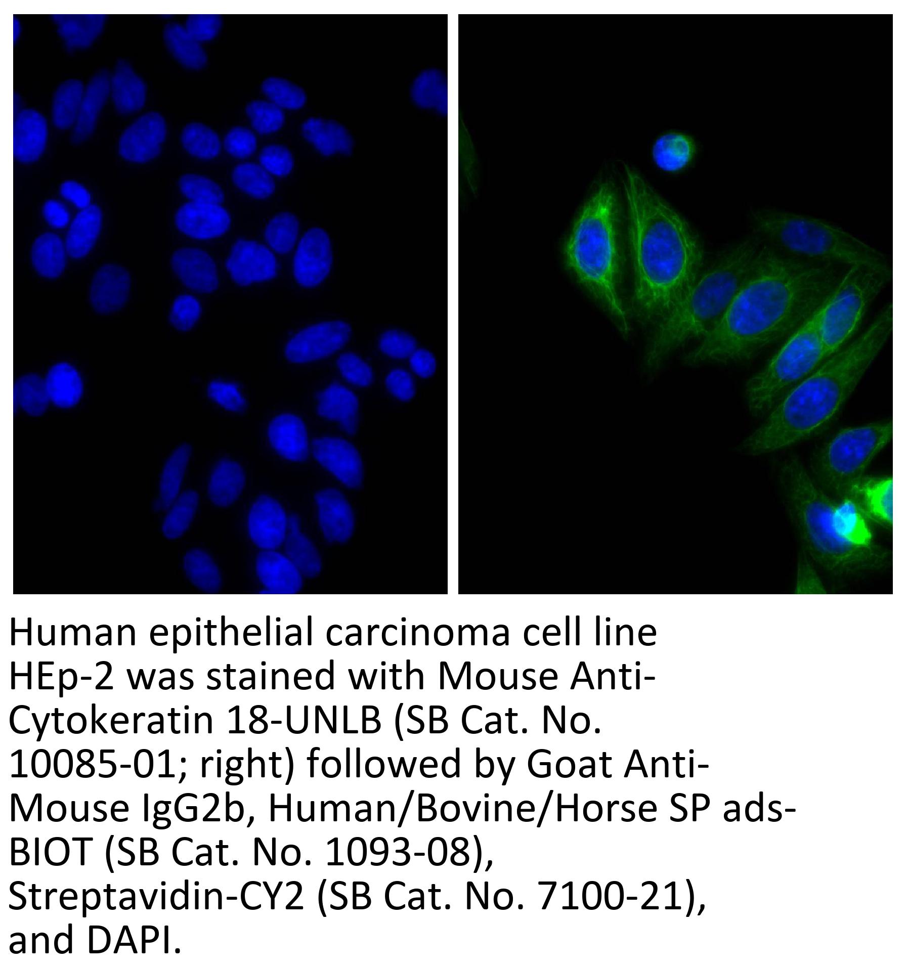 Goat Anti-Mouse IgG2b-Biotin antibody with minimal reactivity to human, bovine, and horse serum proteins for use in ELISA, western blot, and immunocytochemistry assays.