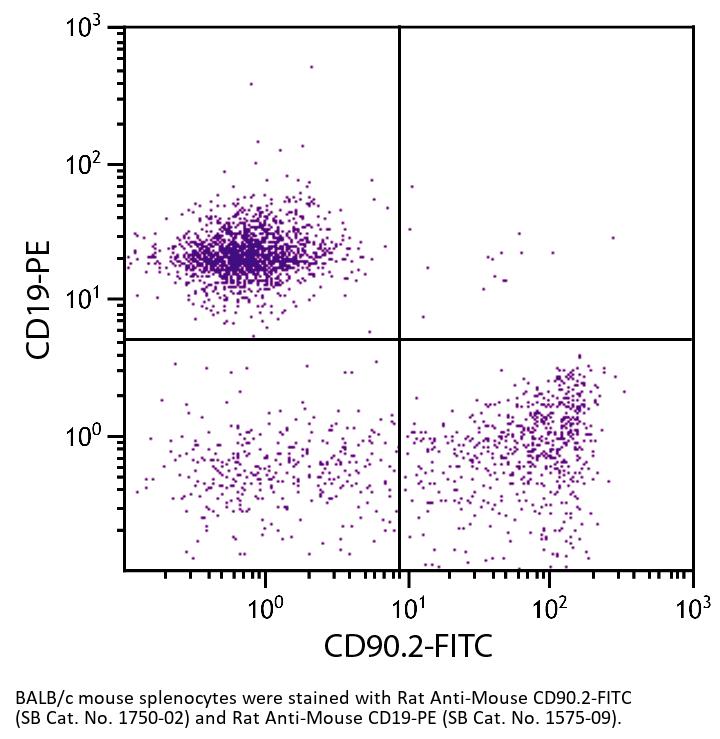 CD90 (Thy-1) is a GPI-anchored molecule and one of the smallest members of the immunoglobulin superfamily consisting of a single V-set domain. The Thy-1.2 alloantigen is expressed on all thymocytes, peripheral T lymphocytes, and some intraepithelial T cells of most mouse strains. It is also expressed in the brain and at varying levels on other non-lymphoid tissues. The 30-H12 monoclonal antibody does not cross react with mouse and rat strains bearing the Thy-1.1 alloantigen (e.g., AKR/J, PL).