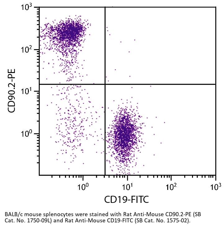 CD90 (Thy-1) is a GPI-anchored molecule and one of the smallest members of the immunoglobulin superfamily consisting of a single V-set domain. The Thy-1.2 alloantigen is expressed on all thymocytes, peripheral T lymphocytes, and some intraepithelial T cells of most mouse strains. It is also expressed in the brain and at varying levels on other non-lymphoid tissues. The 30-H12 monoclonal antibody does not cross react with mouse and rat strains bearing the Thy-1.1 alloantigen (e.g., AKR/J, PL).