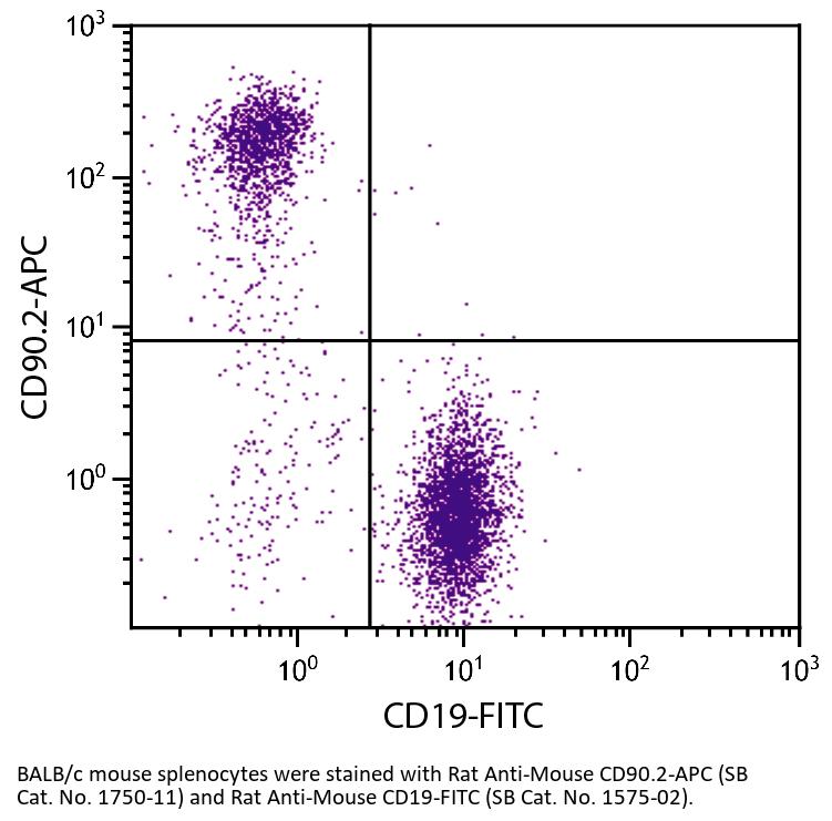 CD90 (Thy-1) is a GPI-anchored molecule and one of the smallest members of the immunoglobulin superfamily consisting of a single V-set domain. The Thy-1.2 alloantigen is expressed on all thymocytes, peripheral T lymphocytes, and some intraepithelial T cells of most mouse strains. It is also expressed in the brain and at varying levels on other non-lymphoid tissues. The 30-H12 monoclonal antibody does not cross react with mouse and rat strains bearing the Thy-1.1 alloantigen (e.g., AKR/J, PL).