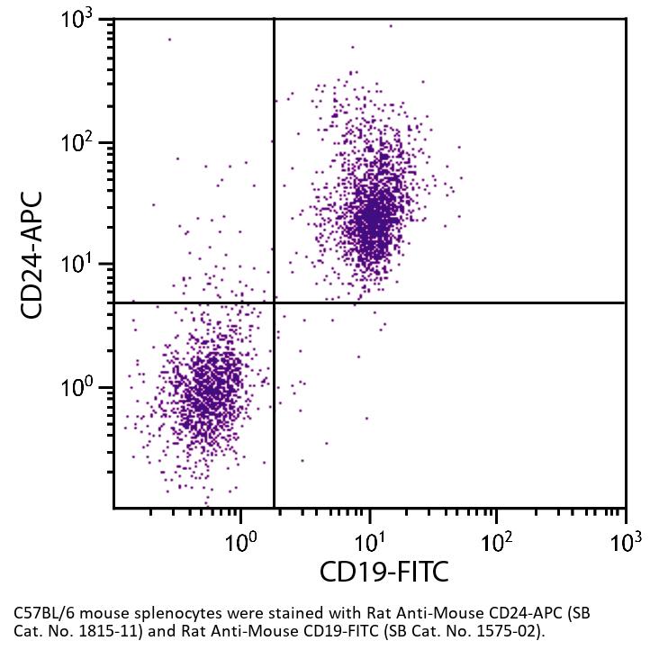 CD24 is expressed in B cells until their terminal differentiation into plasma cells. It has been used widely as a marker to fractionate different B-lineage differentiation stages. CD24 has been found on a variety of other hematopoietic and neural cell types and is now classified as a costimulatory molecule. The CD24 molecule, also known as HSA, is composed mostly of carbohydrate with a protein core of only 31-35 amino acids in the human and 27 amino acids in the mouse. CD24 is now included in the large group of phosphatidylinositol-anchored membrane proteins. Studies with purified CD24 applied to latex beads have demonstrated a self-binding property suggesting that the molecule is capable of promoting homotypic aggregation, binding, and cell adhesion. This is supported by earlier observations of the blockade of B cell lymphoblast aggregation with an anti-CD24 monoclonal antibody. Recent studies of murine CD24 have assigned a role for CD24 as a ligand for P-selectin, a calcium-dependent lectin.