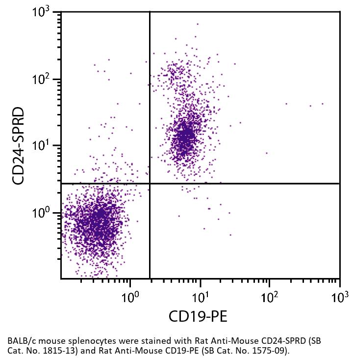 CD24 is expressed in B cells until their terminal differentiation into plasma cells. It has been used widely as a marker to fractionate different B-lineage differentiation stages. CD24 has been found on a variety of other hematopoietic and neural cell types and is now classified as a costimulatory molecule. The CD24 molecule, also known as HSA, is composed mostly of carbohydrate with a protein core of only 31-35 amino acids in the human and 27 amino acids in the mouse. CD24 is now included in the large group of phosphatidylinositol-anchored membrane proteins. Studies with purified CD24 applied to latex beads have demonstrated a self-binding property suggesting that the molecule is capable of promoting homotypic aggregation, binding, and cell adhesion. This is supported by earlier observations of the blockade of B cell lymphoblast aggregation with an anti-CD24 monoclonal antibody. Recent studies of murine CD24 have assigned a role for CD24 as a ligand for P-selectin, a calcium-dependent lectin.