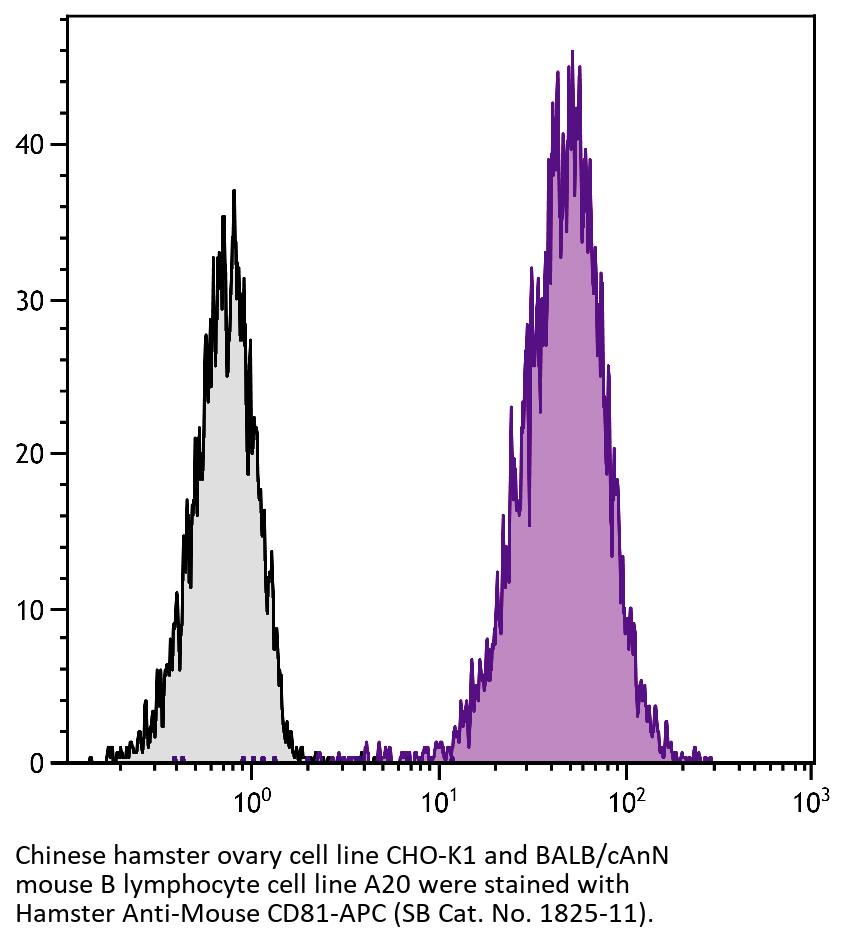 CD81, also known as TAPA-1, is an integral membrane protein expressed on a variety of cell types and has a high degree of sequence homology between human and mouse. CD81 is expressed on thymic stromal cells where it plays an important role in the transition of γδ+ T cells to more mature T cells with αβ T cell receptors. Immunohistochemical staining has revealed that its expression is localized to the subcapsular region of the thymus and, specifically, on cells that have distinct clustering patterns. It has been speculated that the ligand for CD81 is the pre-T cell receptor which is composed of a TCR β chain and glycoprotein pTα. The monoclonal antibody 2F7 can block thymocyte interaction with CD81 in vitro.