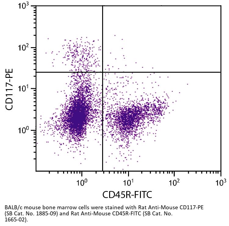 The CD117 (c-Kit) antigen is the cell-surface receptor for stem cell factor (SCF). Together these molecules constitute a ligand/receptor pair which functions to maintain normal hematopoiesis in the adult. Signaling through SCF/c-Kit has an important role in stimulating myeloid and erythroid production of primitive hematopoietic progenitor cells. A variety of cytokines act synergistically with SCF to stimulate proliferation and differentiation of bone marrow progenitor cells. For example, SCF plus IL-7 can stimulate the combined myeloid and B cell differentiation of uncommitted hematopoietic progenitor cells. SCF/c-Kit also participates in erythropoiesis in both the bone marrow and spleen. Loss-of-function mutations for SCF/c-Kit lead to a variety of pleiotropic developmental defects while gain-of-function mutations can lead to constitutive activation of the kit receptor and links to cancer. Examples of the former are mast cell deficiency and severe macrocytic anemia while the latter mutation has been identified in mastocytomas.