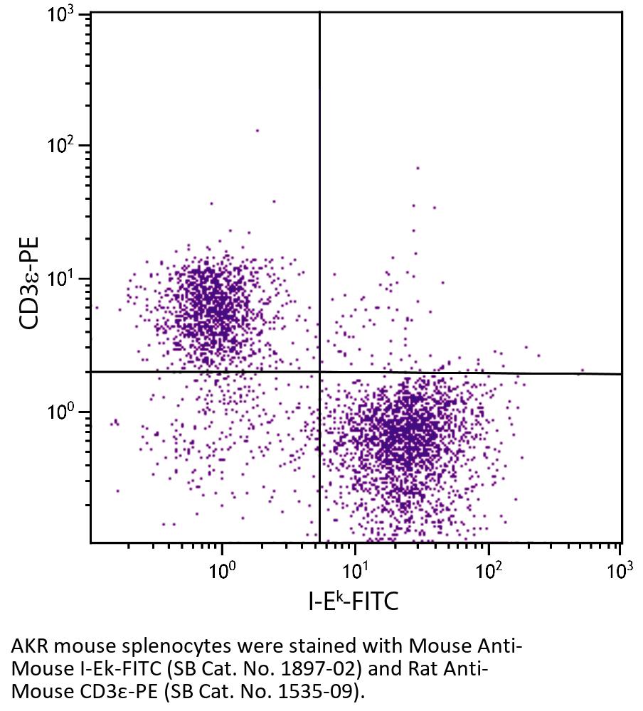 The monoclonal antibody 14-4-4S reacts with the I-Ek class II alloantigen on cells from mice of the H-2d, H-2p, and H-2r haplotypes. Cells from mice of the H-2b, H-2f, H-2q, and H-2s haplotypes do not express I-E antigen. The antibody has been reported to cross-react with the rat MHC class II alloantigen RT1D.