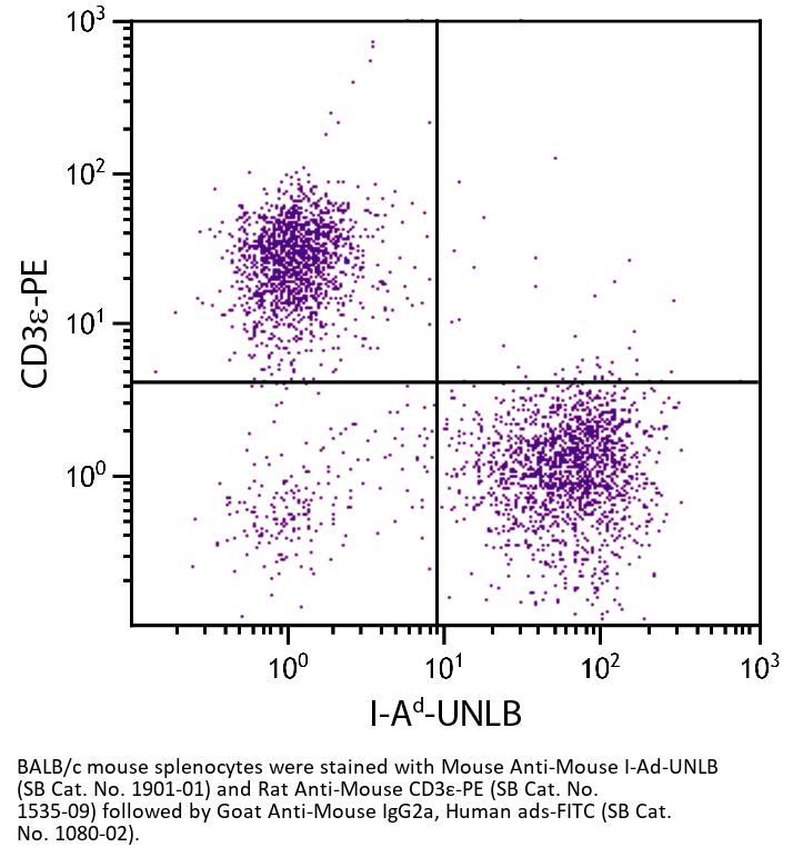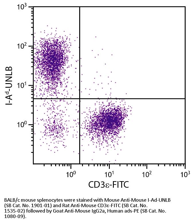 The monoclonal antibody 34-5-3 reacts with the β chain of the I-Ad MHC class II alloantigen. It cross-reacts with I-Ab and with cells from mice of the H-2p and H-2q halotypes.