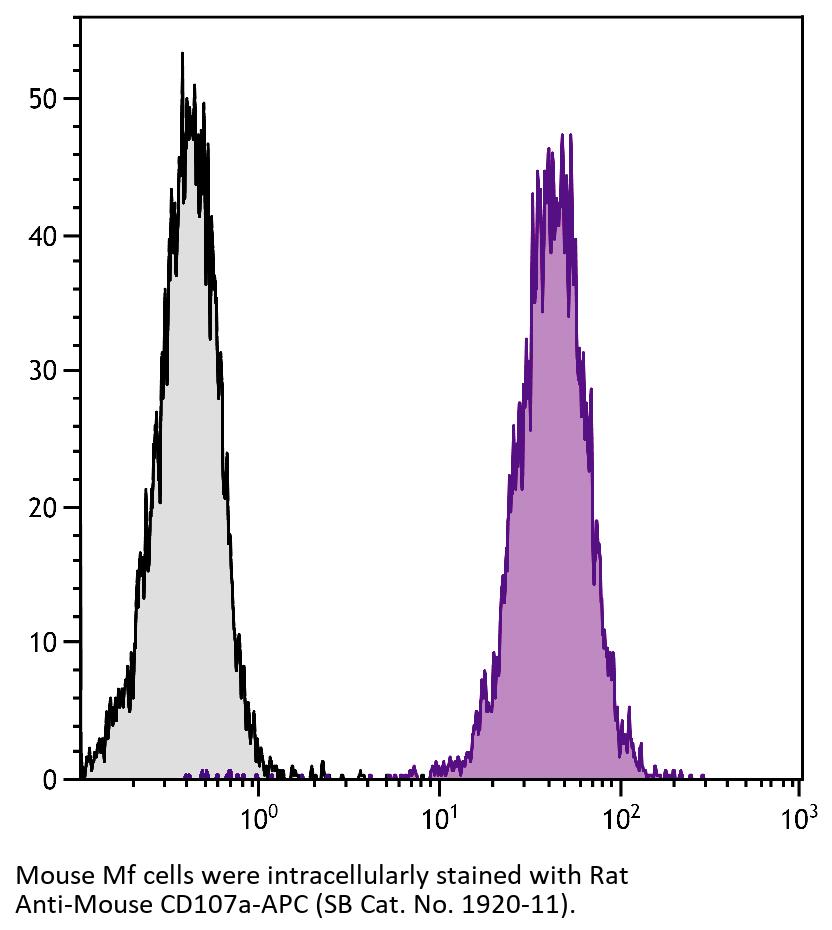CD107a, also known as lysosomal-associated membrane protein 1 (LAMP-1), is a heavily glycosylated type I transmembrane protein that constitutes one of the two major sialoglycoproteins on lysosomal membranes that can be used to distinguish lysosomes from other organelles. It is a ligand for galaptin, an S-type lectin present in extracellular matrix, through its recognition of acetyllactosamine oligosaccharide chains and is a ligand for E-selectin-mediated cell adhesion. CD107a is principally expressed in epithelial cells and macrophages in a variety of organs in normal and beige mutant mice. It may function in protecting the inner surface of the lysosomal membrane by forming a barrier to lysosomal hydrolases.