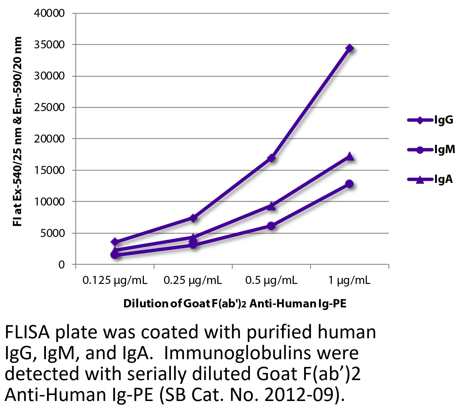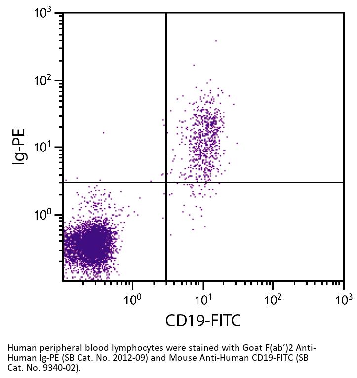 Goat F(ab')2 Anti-Human Ig-PE antibody for use in flow cytometry assays.