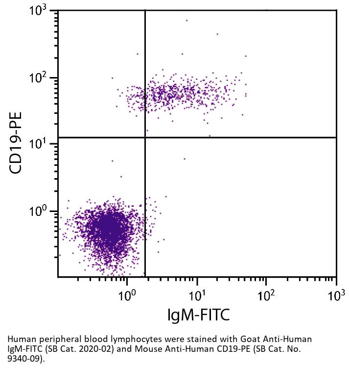 Goat Anti-Human IgM-FITC antibody for use in flow cytometry, immunohistochemistry / immunocytochemistry, and western blot assays.