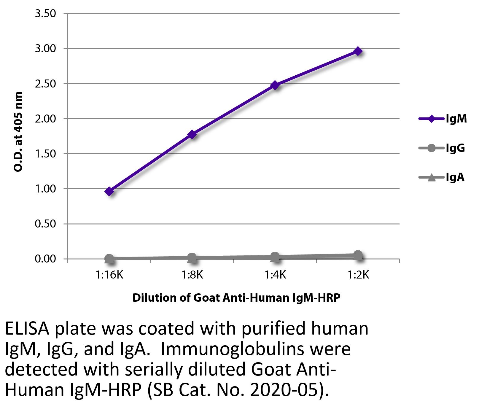 Goat Anti-Human IgM-HRP antibody for use in ELISA, immunohistochemistry / immunocytochemistry, western blot, and ELISpot assays.