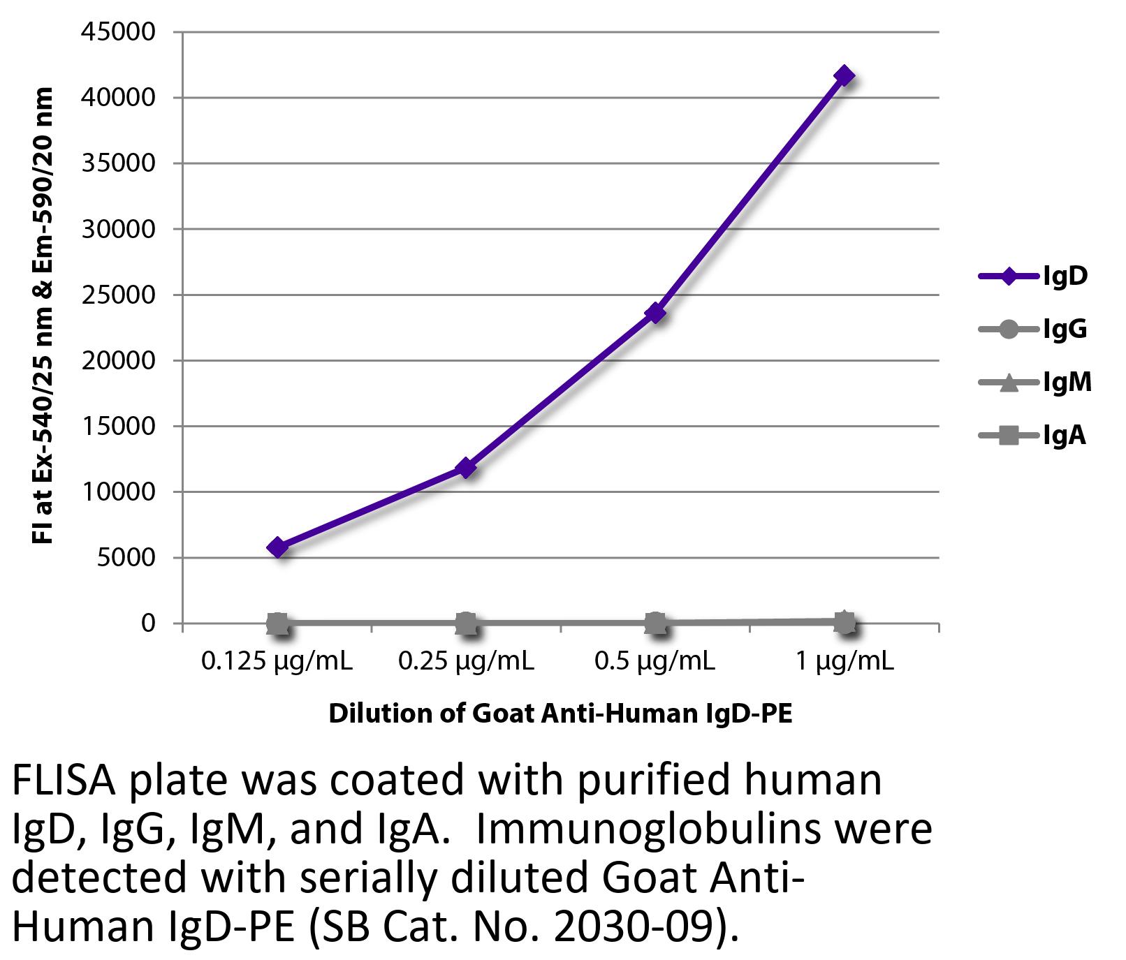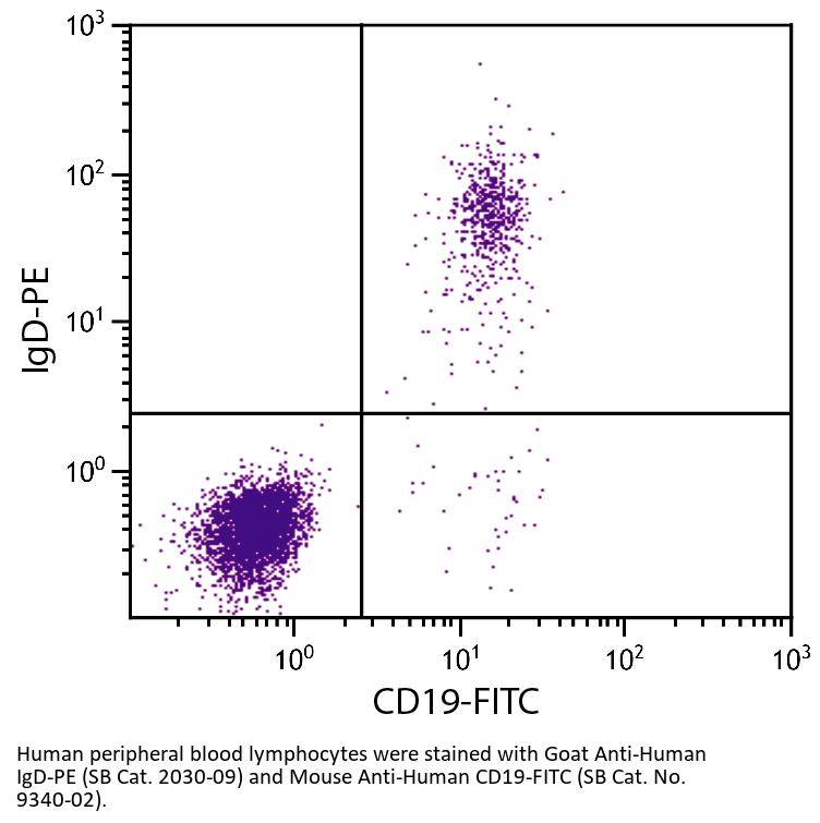 Goat Anti-Human IgD-PE antibody for use in flow cytometry assays.