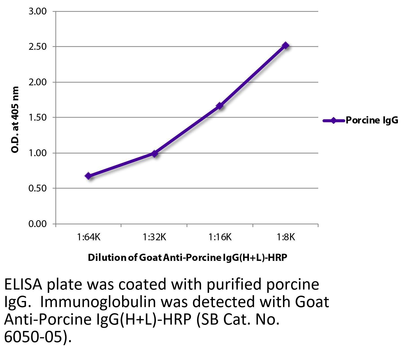 Goat Anti-Porcine IgG(H+L)-HRP antibody for use in ELISA, immunohistochemistry / immunocytochemistry, and western blot assays.