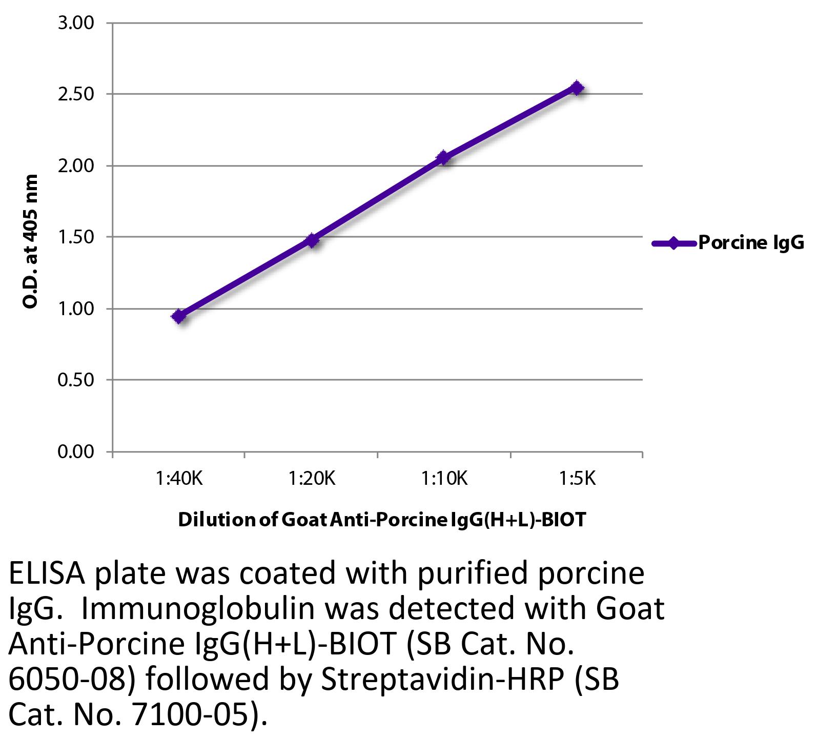 Goat Anti-Porcine IgG(H+L)-Biotin antibody for use in ELISA, flow cytometry, immunohistochemistry / immunocytochemistry, and western blot assays.