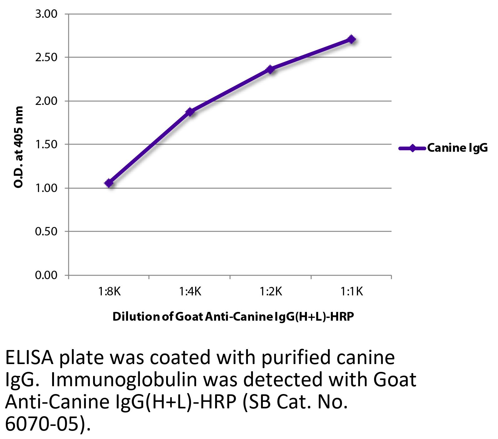 Goat Anti-Canine IgG(H+L)-HRP antibody for use in ELISA, immunohistochemistry / immunocytochemistry, and western blot assays.
