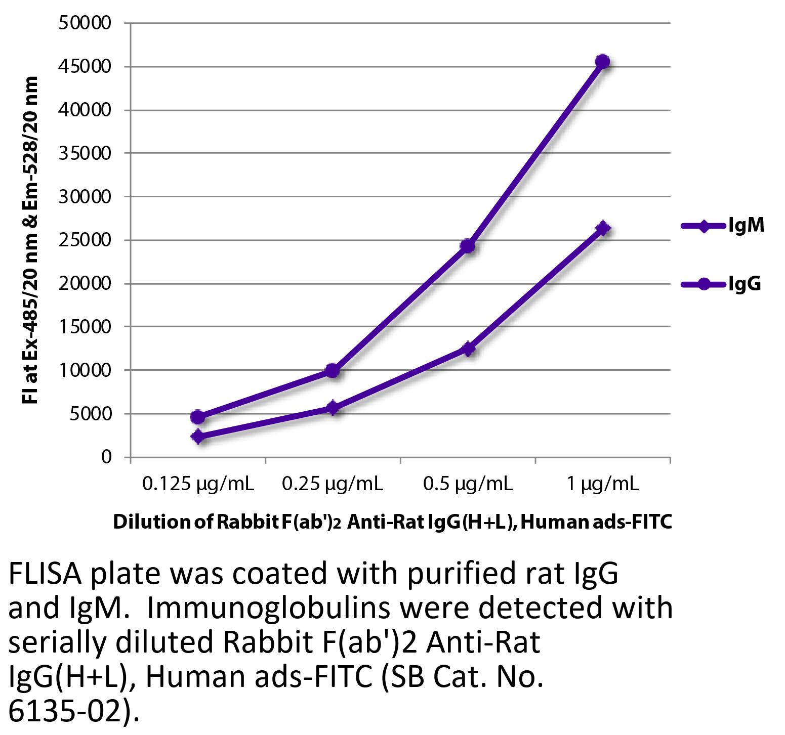 Rabbit F(ab')2 Anti-Rat IgG(H+L), Human ads-FITC