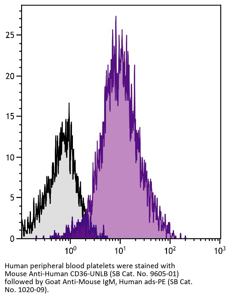 CD36, also known as GPIV, is an 88 kDa glycoprotein that is a receptor for extracellular matrix proteins such as collagen and thrombospondin. Its expression is restricted to platelets, monocytes, macrophages, erythrocyte precursors, adipocytes, activated keratinocytes, and some endothelial and epithelial cells. CD36 is a multifunctional protein that has roles as a cell adhesion molecule, a scavenger receptor, a signal transducer and in the pathogenesis of malaria via its affinity for Plasmodium falciparum erythrocyte membrane protein 1 (PEMP1). CD36 on macrophages functions in the phagocytic clearance of apoptotic cells.