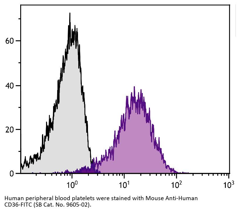 CD36, also known as GPIV, is an 88 kDa glycoprotein that is a receptor for extracellular matrix proteins such as collagen and thrombospondin. Its expression is restricted to platelets, monocytes, macrophages, erythrocyte precursors, adipocytes, activated keratinocytes, and some endothelial and epithelial cells. CD36 is a multifunctional protein that has roles as a cell adhesion molecule, a scavenger receptor, a signal transducer and in the pathogenesis of malaria via its affinity for Plasmodium falciparum erythrocyte membrane protein 1 (PEMP1). CD36 on macrophages functions in the phagocytic clearance of apoptotic cells.