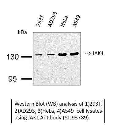 JAK1 Polyclonal Antibody detects endogenous levels of JAK1 protein.