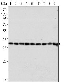 GAPDH Monoclonal Antibody detects endogenous levels of GAPDH protein.