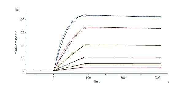This protein carries a polyhistidine tag at the N-terminus. The protein has a calculated MW of 23.7 kDa. The protein migrates as 30 kDa and 31-35 kDa when calibrated against Star Ribbon Pre-stained Protein Marker under reducing (R) condition (SDS-PAGE) due to glycosylation.