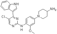 Smiles COC1=C(C=CC(=C1)N2CCC(CC2)N)NC3=NC=C(C(=N3)C4=CNC5=CC=CC=C54)Cl