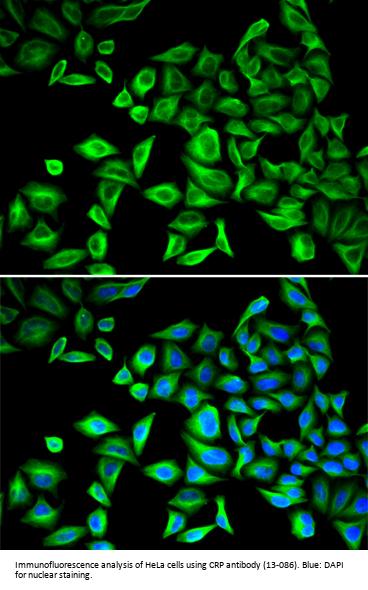 Recombinant fusion protein containing a sequence corresponding to amino acids 1-224 of human CRP (NP_000558.2).
