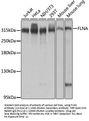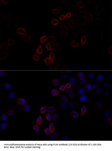 Recombinant fusion protein containing a sequence corresponding to amino acids 2348-2647 of human FLNA (NP_001104026.1).