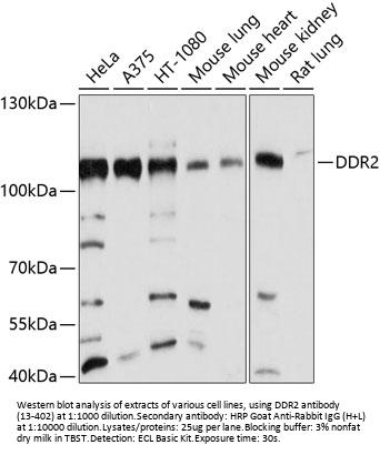 Recombinant fusion protein containing a sequence corresponding to amino acids 290-400 of human DDR2 (NP_001014796.1).
