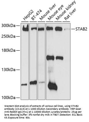 Recombinant fusion protein containing a sequence corresponding to amino acids 1550-1850 of human STAB2 (NP_060034.9).
