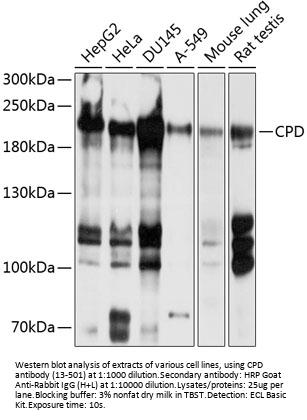 Recombinant fusion protein containing a sequence corresponding to amino acids 860-1100 of human CPD (NP_001295.2).