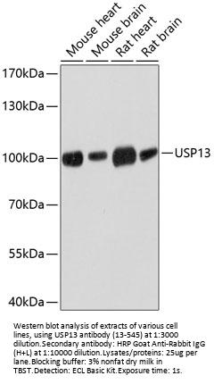Recombinant fusion protein containing a sequence corresponding to amino acids 90-200 of human USP13 (NP_003931.2).