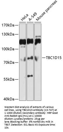 Recombinant fusion protein containing a sequence corresponding to amino acids 1-300 of human TBC1D15 (NP_073608.4).