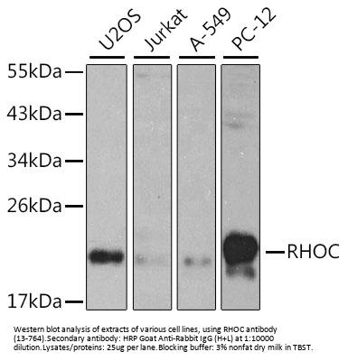 Recombinant fusion protein containing a sequence corresponding to amino acids 1-193 of human RHOC (NP_001036144.1).