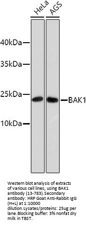 Alias Bak Antibody: BAK,CDN1,BCL2L7,BAK-LIKE,BAK,Apoptosis regulator BAK,Bcl2-L-7