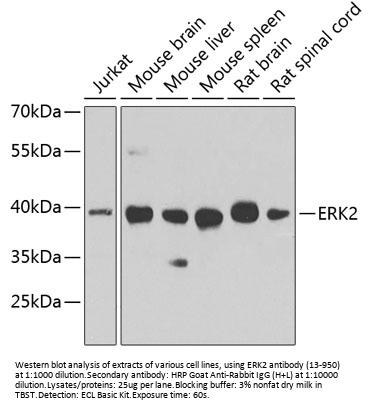 A synthetic peptide corresponding to a sequence within amino acids 200-300 of human ERK2 (NP_620407.1).