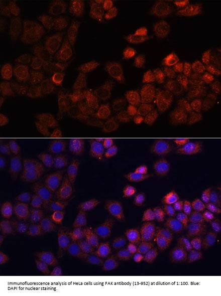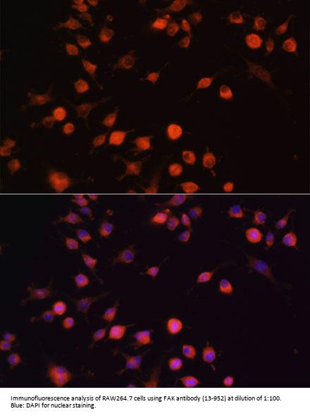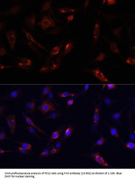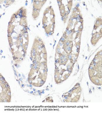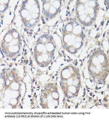 A synthetic peptide corresponding to a sequence within amino acids 700-800 of human FAK (NP_722560.1).