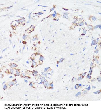 The protein encoded by this gene is a transmembrane glycoprotein that is a member of the protein kinase superfamily. This protein is a receptor for members of the epidermal growth factor family. EGFR is a cell surface protein that binds to epidermal growth factor. Binding of the protein to a ligand induces receptor dimerization and tyrosine autophosphorylation and leads to cell proliferation. Mutations in this gene are associated with lung cancer.