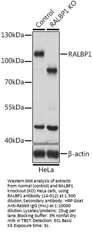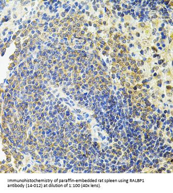 Recombinant fusion protein containing a sequence corresponding to amino acids 396-655 of human RALBP1 (NP_006779.1).