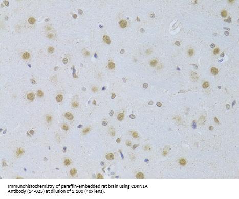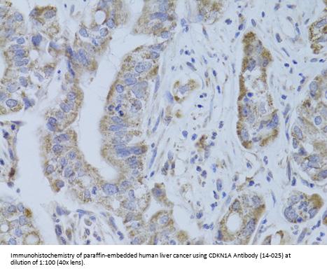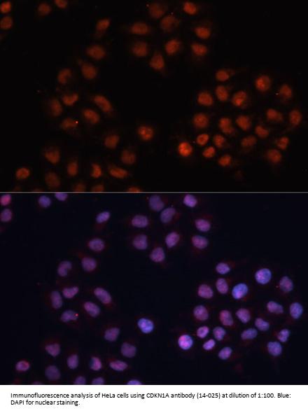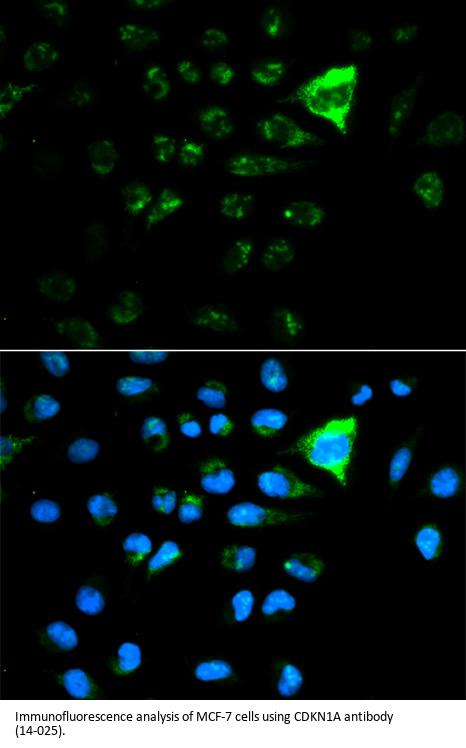 This gene encodes a potent cyclin-dependent kinase inhibitor. The encoded protein binds to and inhibits the activity of cyclin-cyclin-dependent kinase2 or -cyclin-dependent kinase4 complexes, and thus functions as a regulator of cell cycle progression at G1. The expression of this gene is tightly controlled by the tumor suppressor protein p53, through which this protein mediates the p53-dependent cell cycle G1 phase arrest in response to a variety of stress stimuli. This protein can interact with proliferating cell nuclear antigen, a DNA polymerase accessory factor, and plays a regulatory role in S phase DNA replication and DNA damage repair. This protein was reported to be specifically cleaved by CASP3-like caspases, which thus leads to a dramatic activation of cyclin-dependent kinase2, and may be instrumental in the execution of apoptosis following caspase activation. Mice that lack this gene have the ability to regenerate damaged or missing tissue. Multiple alternatively spliced variants have been found for this gene.