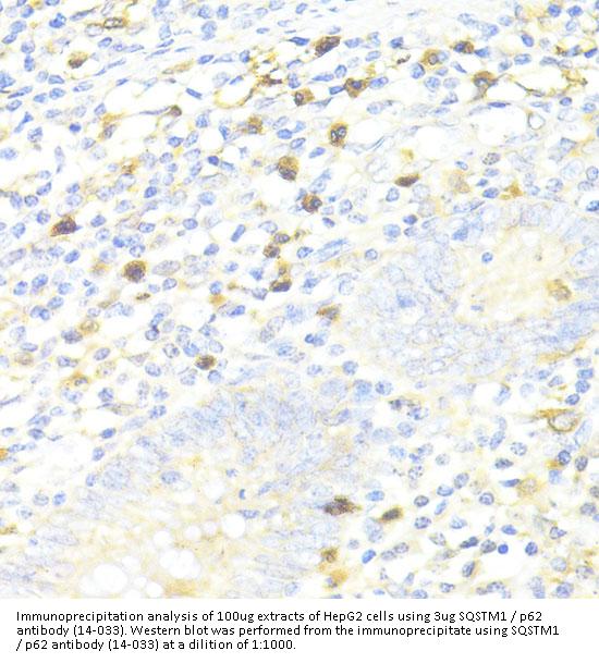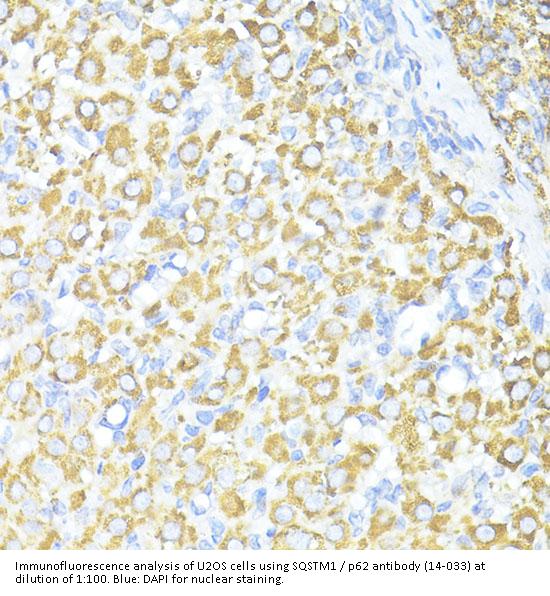 Alias SQSTM1 Antibody: p60,p62,A170,OSIL,PDB3,ZIP3,p62B,ORCA,Sequestosome-1,EBI3-associated protein of 60 kDa,EBIAP