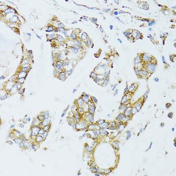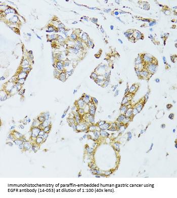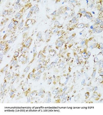 The protein encoded by this gene is a transmembrane glycoprotein that is a member of the protein kinase superfamily. This protein is a receptor for members of the epidermal growth factor family. EGFR is a cell surface protein that binds to epidermal growth factor. Binding of the protein to a ligand induces receptor dimerization and tyrosine autophosphorylation and leads to cell proliferation. Mutations in this gene are associated with lung cancer.