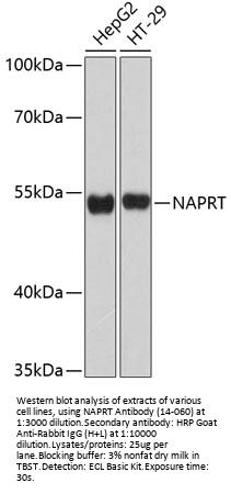 Recombinant fusion protein containing a sequence corresponding to amino acids 309-538 of human NAPRT1 (NP_660202.3).