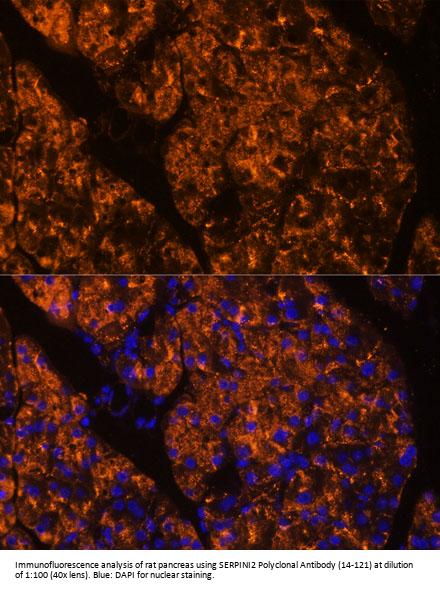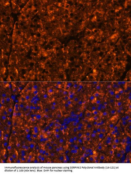Recombinant fusion protein containing a sequence corresponding to amino acids 56-405 of human SERPINI2 (NP_006208.1).