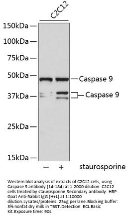 Alias Caspase-9 Antibody: MCH6,APAF3,APAF-3,PPP1R56,ICE-LAP6,MCH6,Caspase-9,Apoptotic protease Mch-6,CASP-9