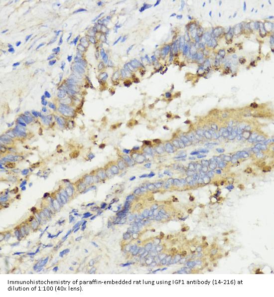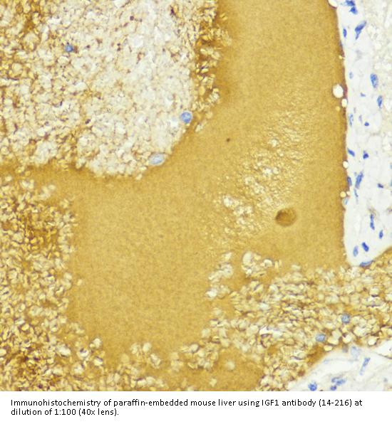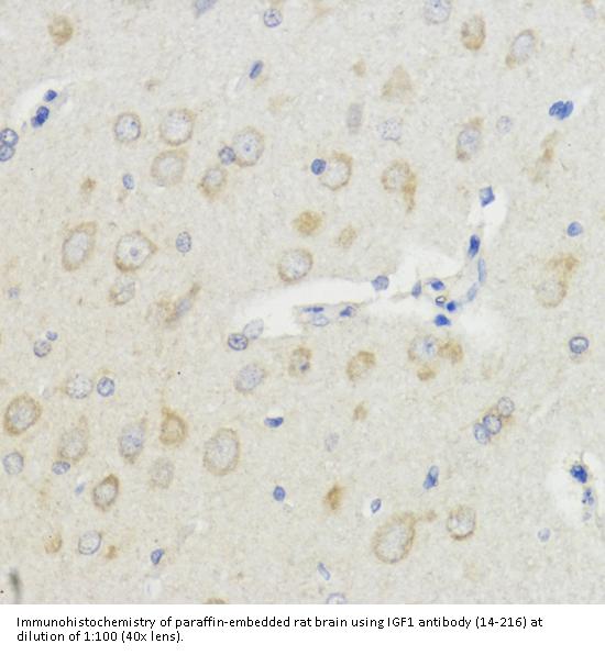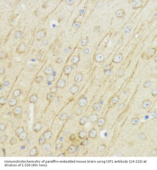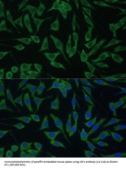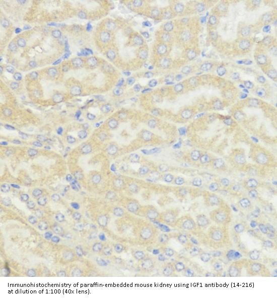 A synthetic peptide corresponding to a sequence within amino acids 50-150 of human IGF1 (NP_000609.1).