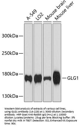 Recombinant fusion protein containing a sequence corresponding to amino acids 974-1203 of human GLG1 (NP_036333.2).