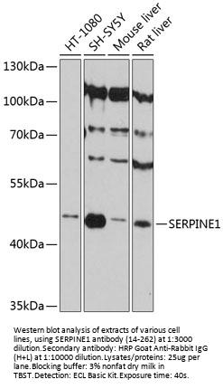 This gene encodes a member of the serine proteinase inhibitor (serpin) superfamily. This member is the principal inhibitor of tissue plasminogen activator (tPA) and urokinase (uPA), and hence is an inhibitor of fibrinolysis. Defects in this gene are the cause of plasminogen activator inhibitor-1 deficiency (PAI-1 deficiency), and high concentrations of the gene product are associated with thrombophilia. Alternatively spliced transcript variants encoding different isoforms have been found for this gene.