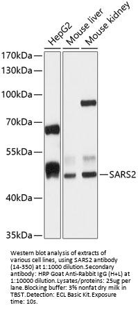 Recombinant fusion protein containing a sequence corresponding to amino acids 289-518 of human SARS2 (NP_060297.1).