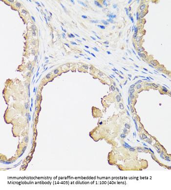 This gene encodes a serum protein found in association with the major histocompatibility complex (MHC) class I heavy chain on the surface of nearly all nucleated cells. The protein has a predominantly beta-pleated sheet structure that can form amyloid fibrils in some pathological conditions. The encoded antimicrobial protein displays antibacterial activity in amniotic fluid. A mutation in this gene has been shown to result in hypercatabolic hypoproteinemia.